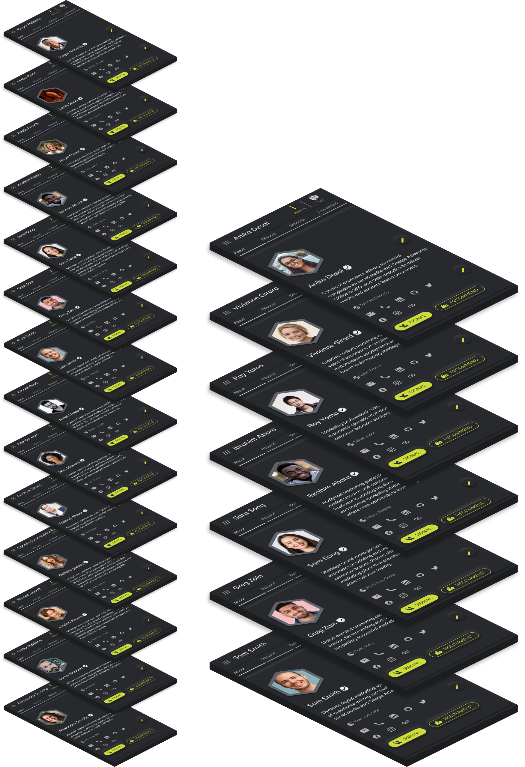 Perfiles de candidatos con cientos de puntos de información